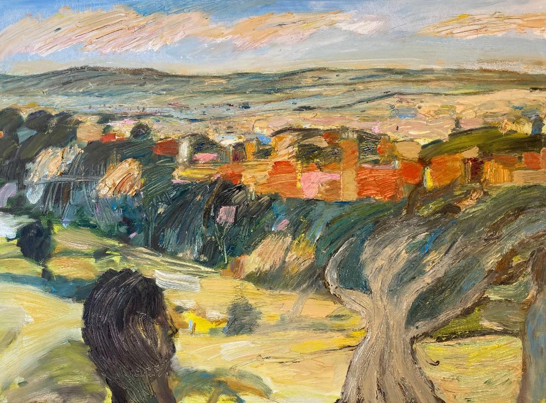 Pueblo con Sierra II, 81 x 60 cm, Öl auf Leinwand, 2025, (privat besitz)