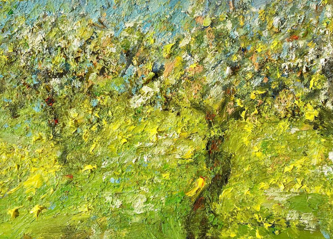 Arbol en un dia primaveral, 38 x 46 cm, Öl auf Leinwand, 2025