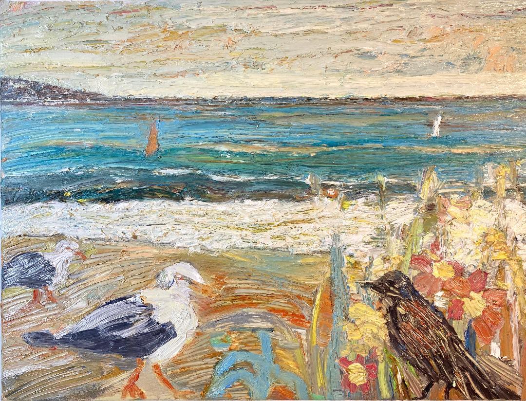 El pajaro y la playa, 55 x 46 cm, Öl auf Leinwand, 2019