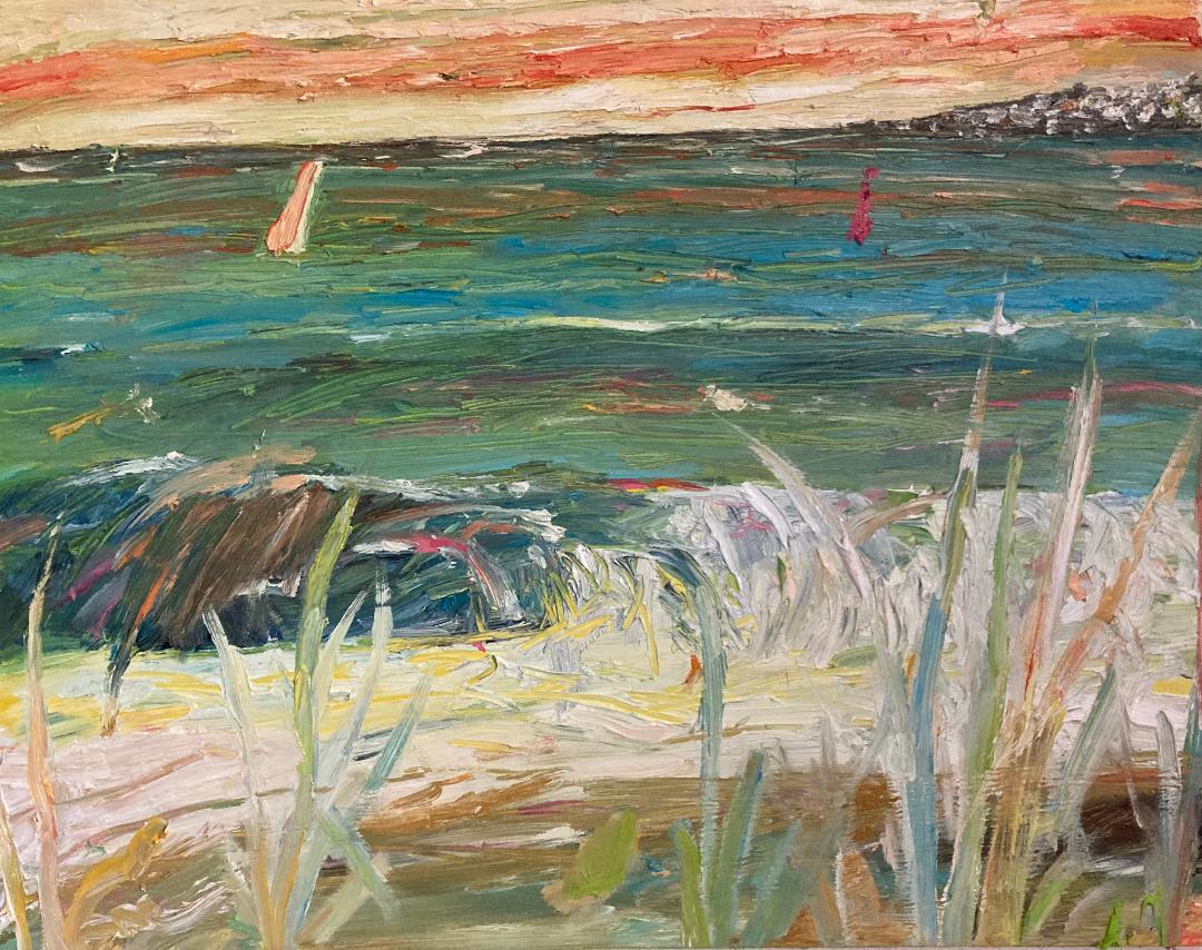 Mar con pueblo, 92 x 73 cm, Öl auf Leinwand, 2025
