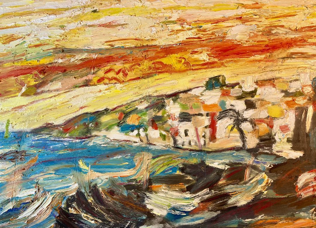 Pueblo con mar II, 81 x 60 cm, Öl auf Leinwand, 2026