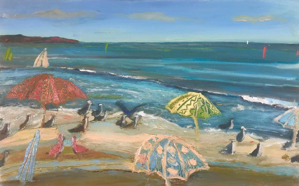 Conferencia en la playa,  80 x 50 cm, Öl auf Leinwand, 2021