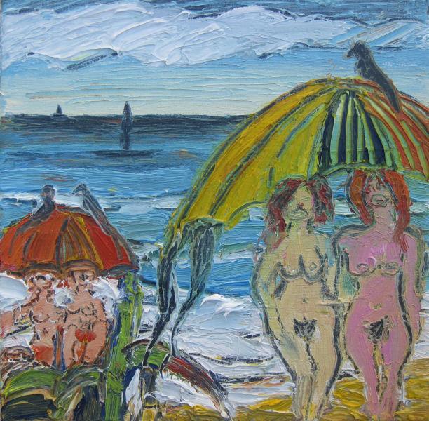 Mujeres en la playa, 50 x 60 cm, Mischtechnik auf Holz, 2000