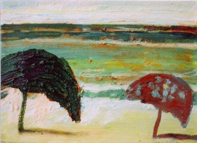 Mar con paraguas y dos pajaros, 80 x 55 cm, Öl auf Leinwand, 2006