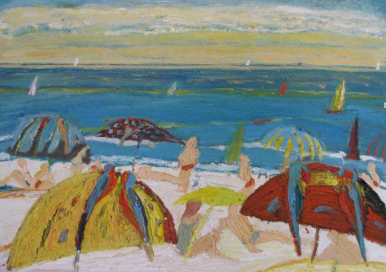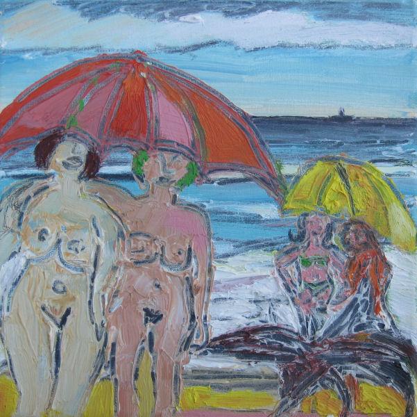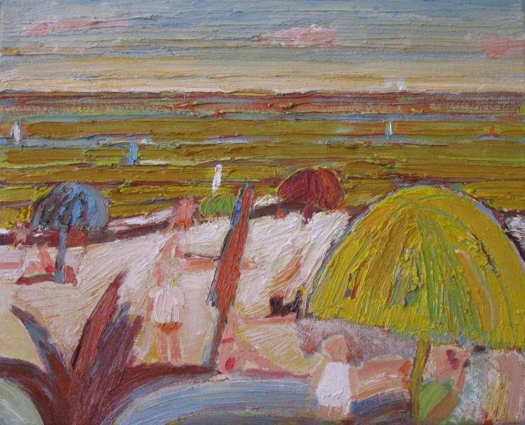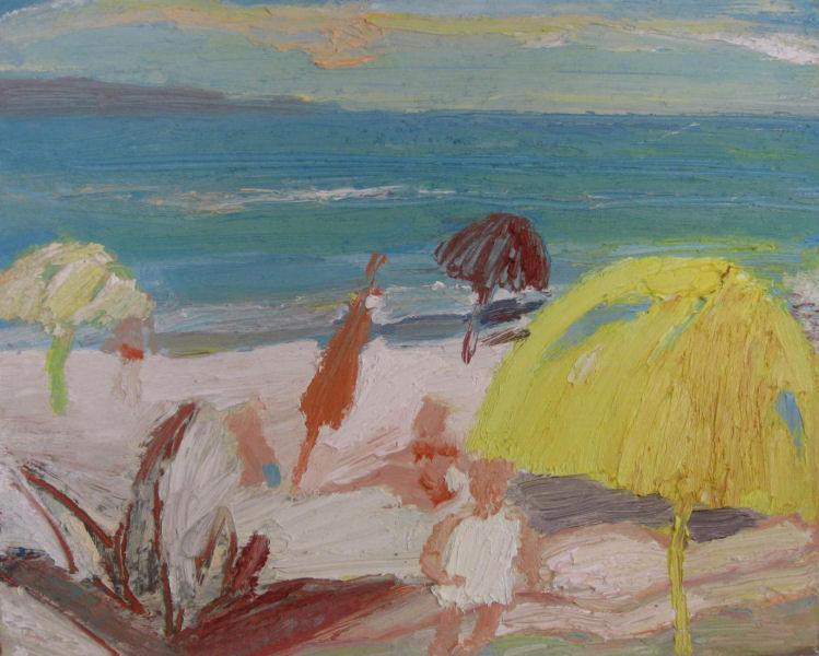 Mar con paraguas I, 33 x 24 cm, óleo sobre tela, 2004 (colección privada)