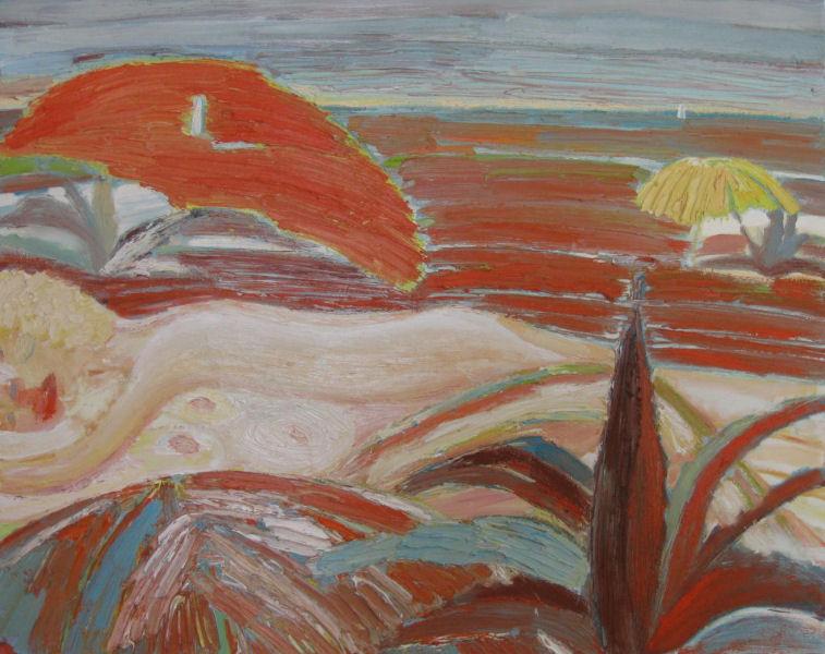 Mar rojo con paraguas, 92 x 73 cm, óleo sobre tela, 2004 (colección privada)