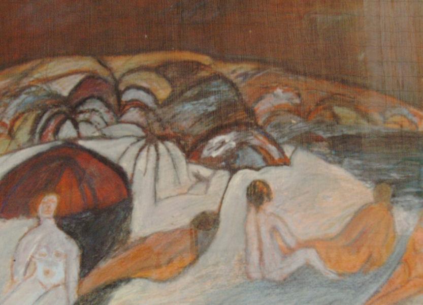 Mujeres en la playa, 50 x 60 cm, técnica mixta sobre madera, 2000
