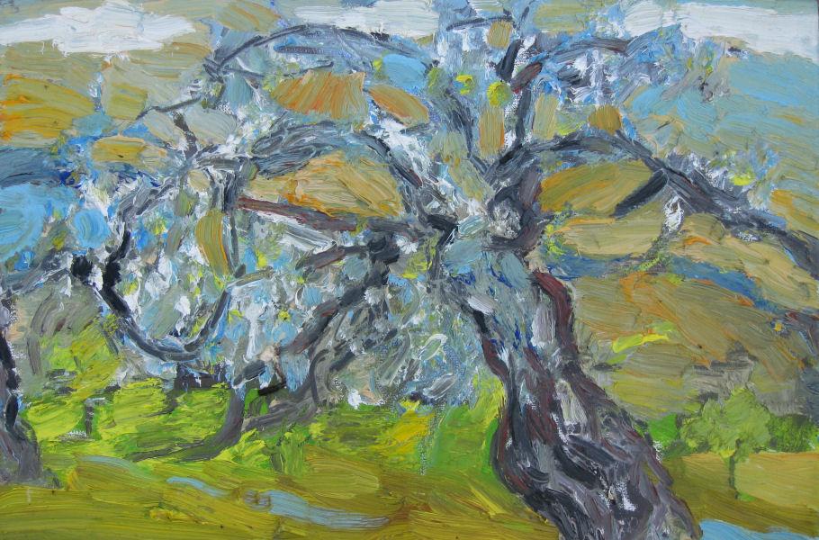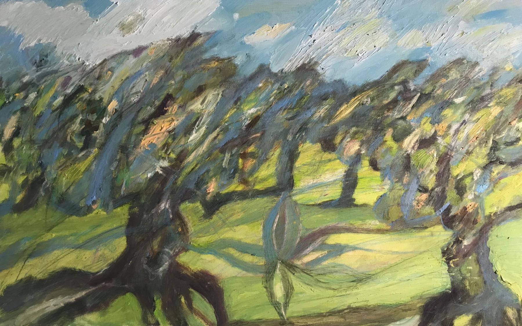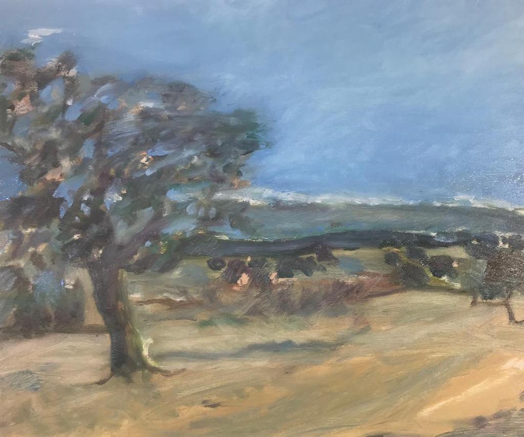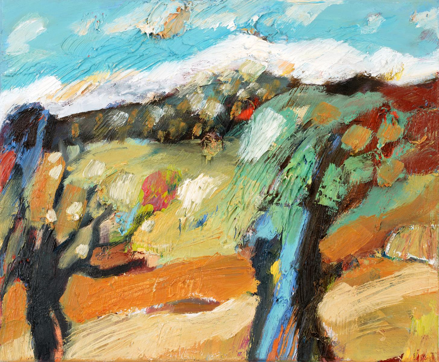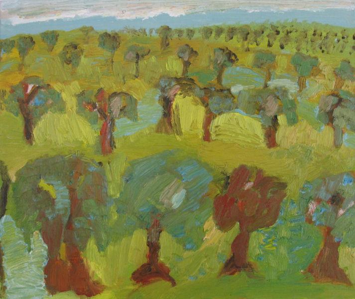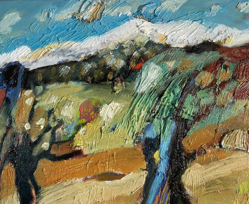 Olivar con azul, 50 x 80 cm, oil on canvas, 2020