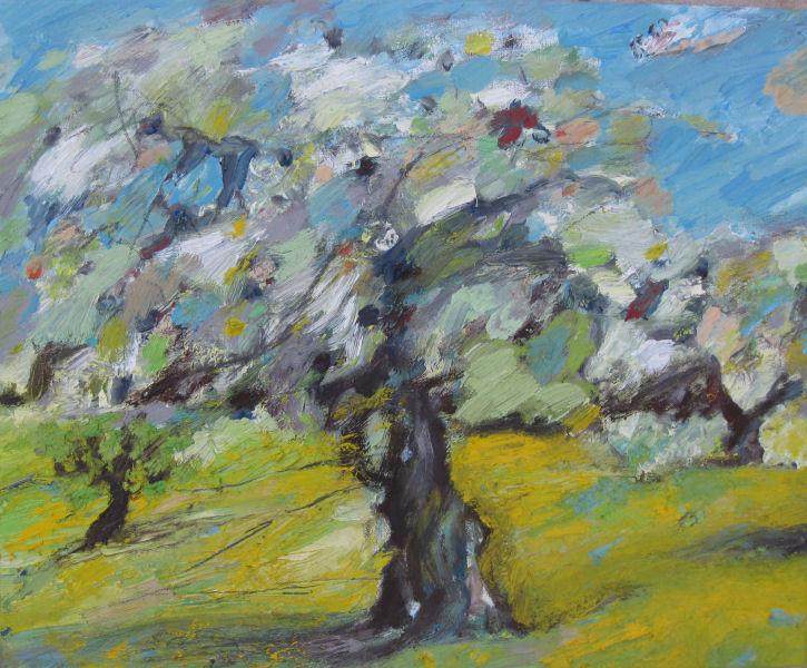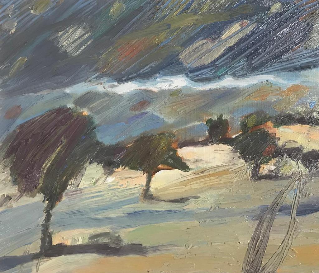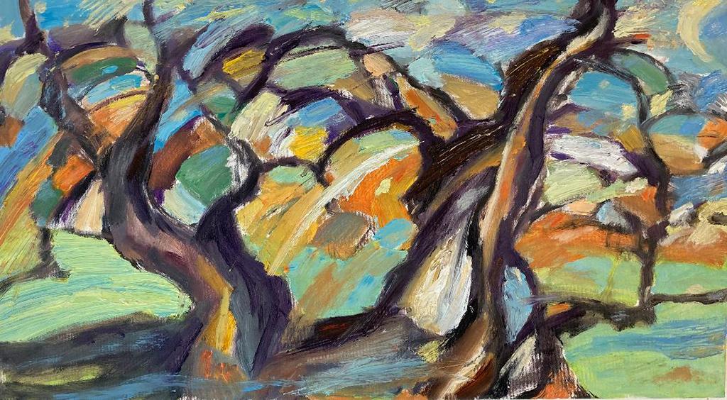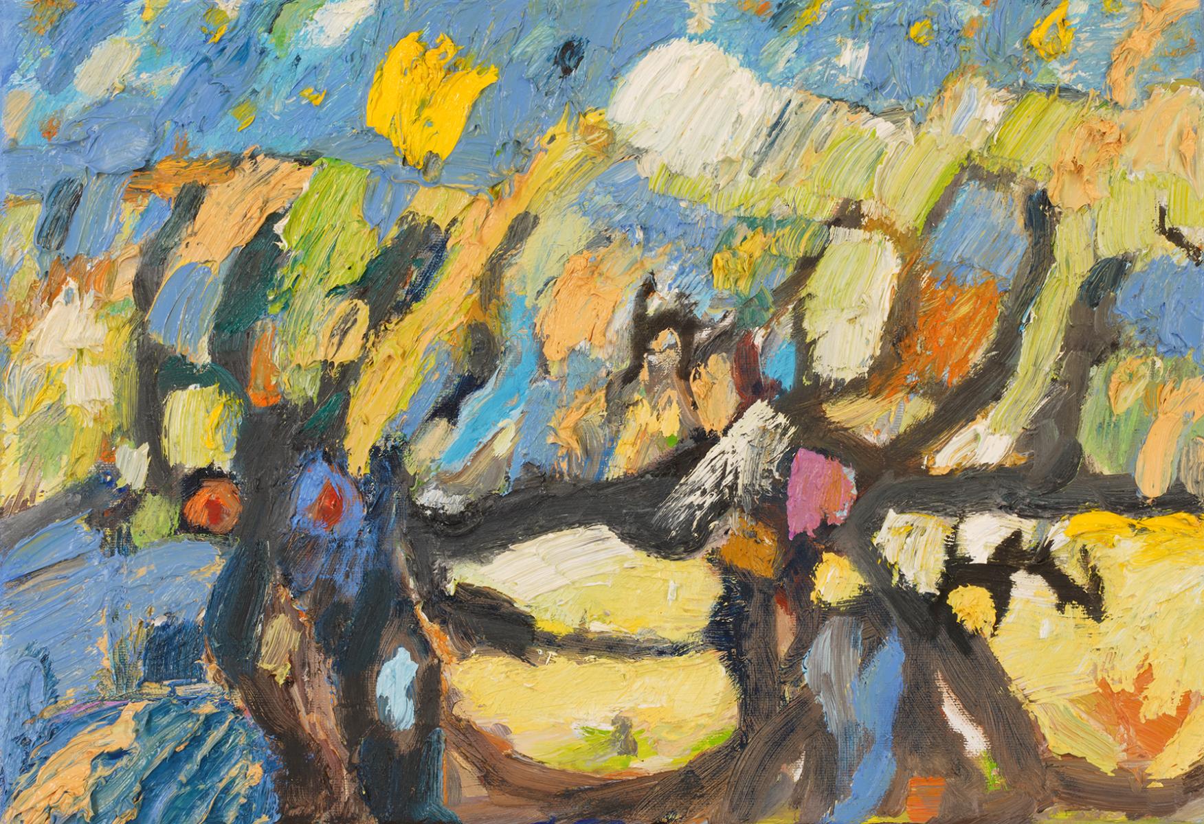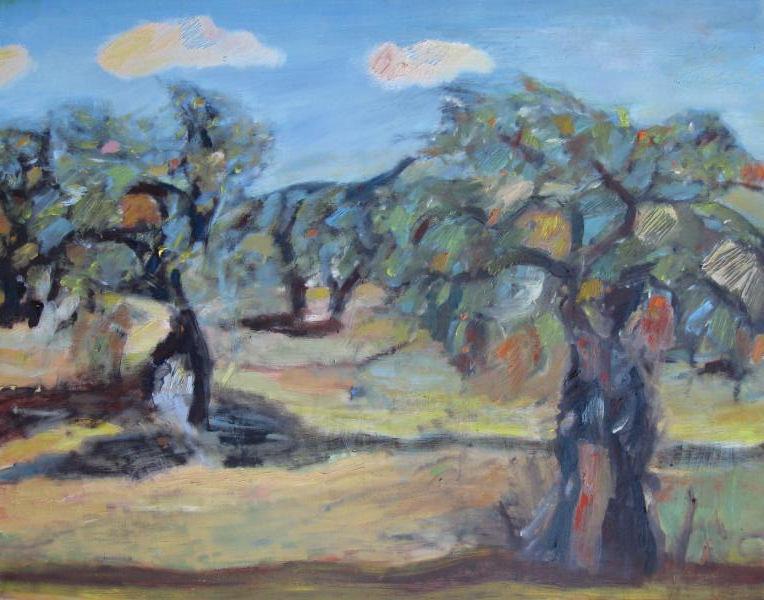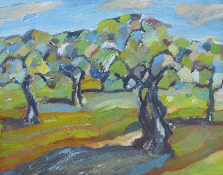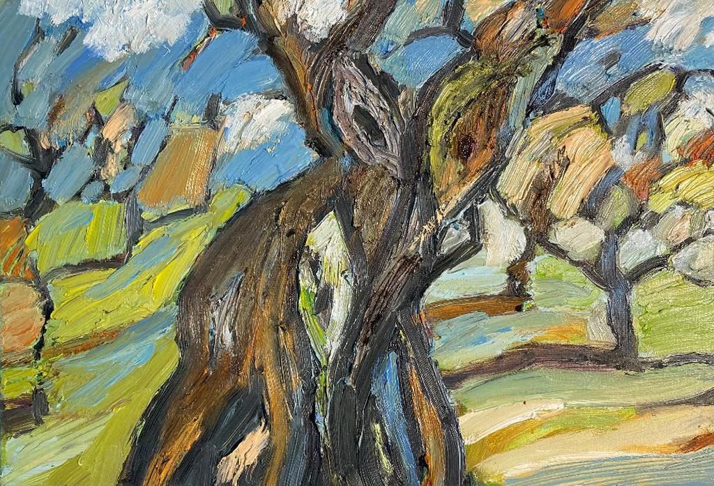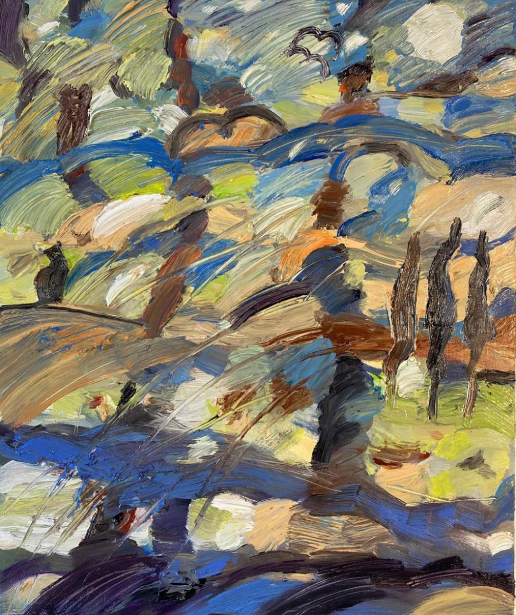 Olivar con azul, 50 x 80 cm, oil on canvas, 2020