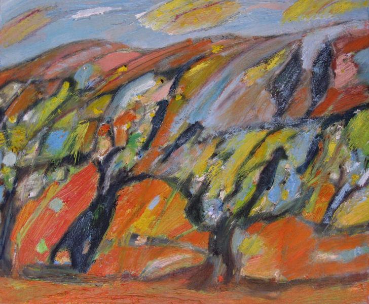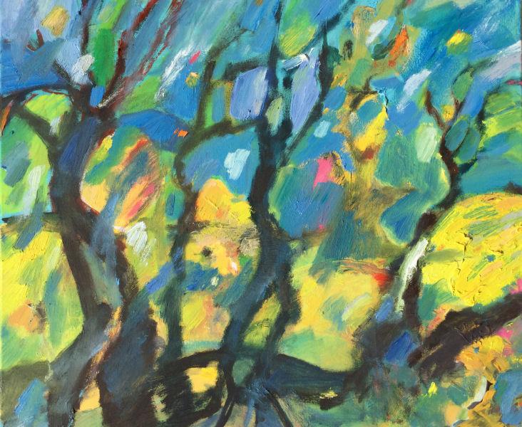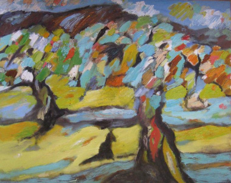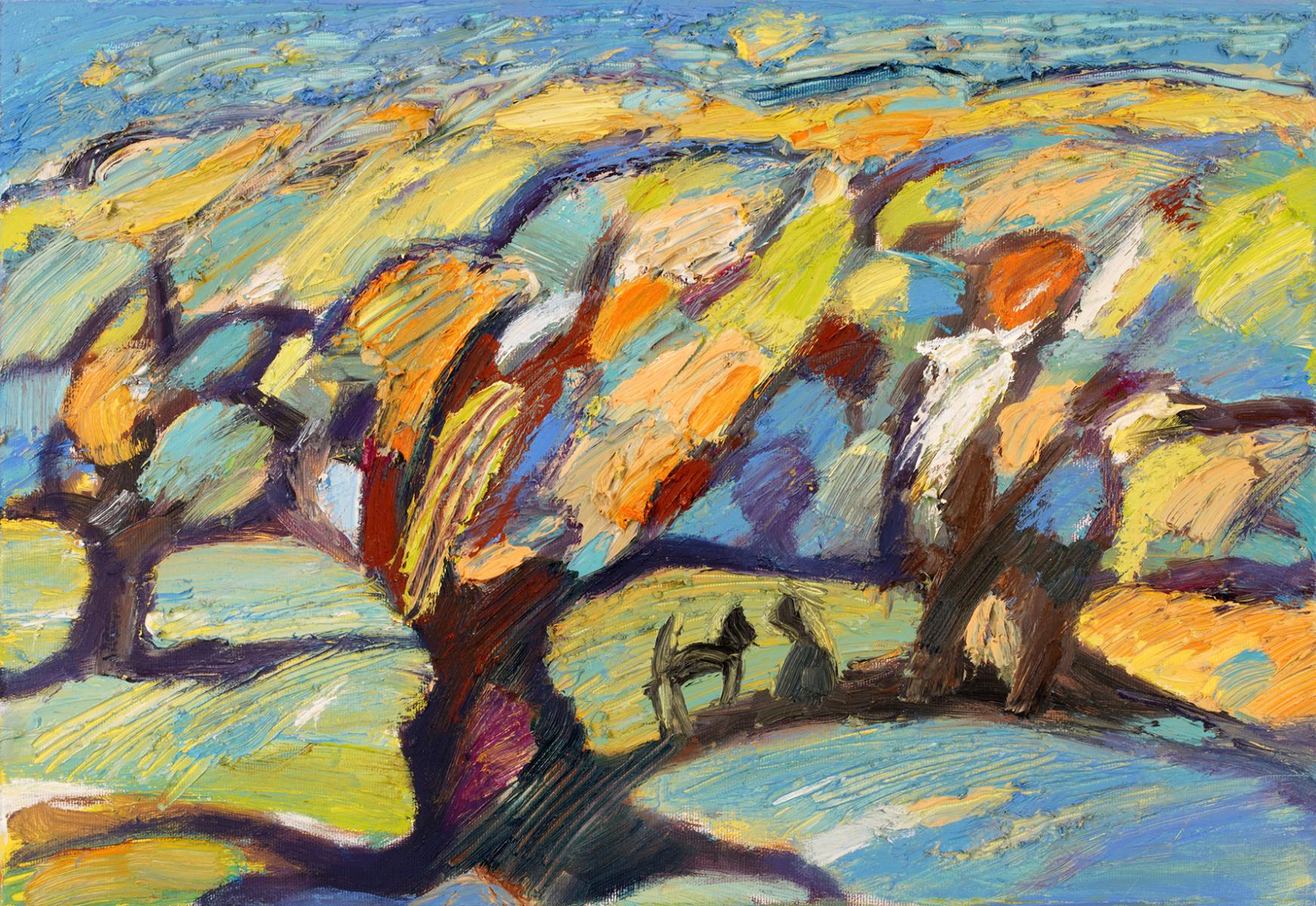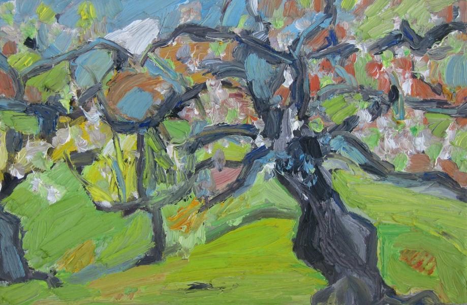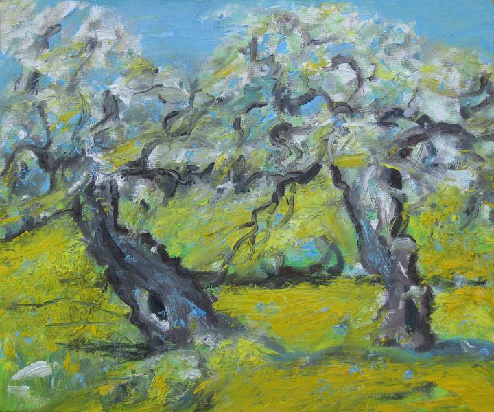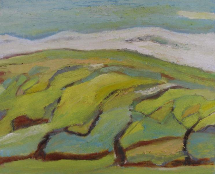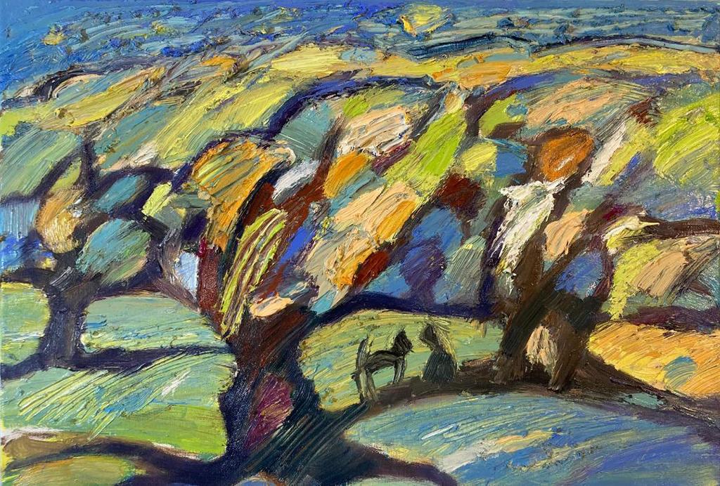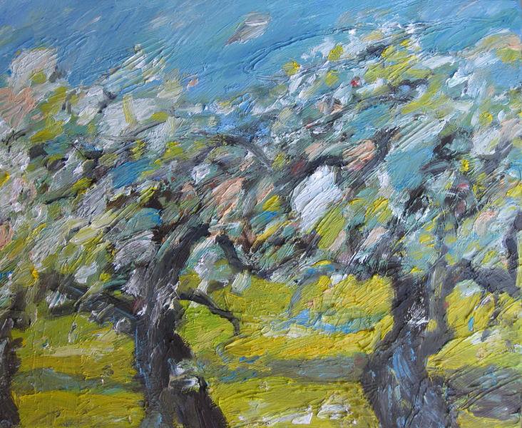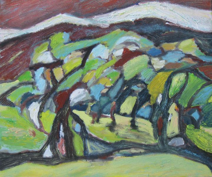 Olivar con azul, 50 x 80 cm, oil on canvas, 2020