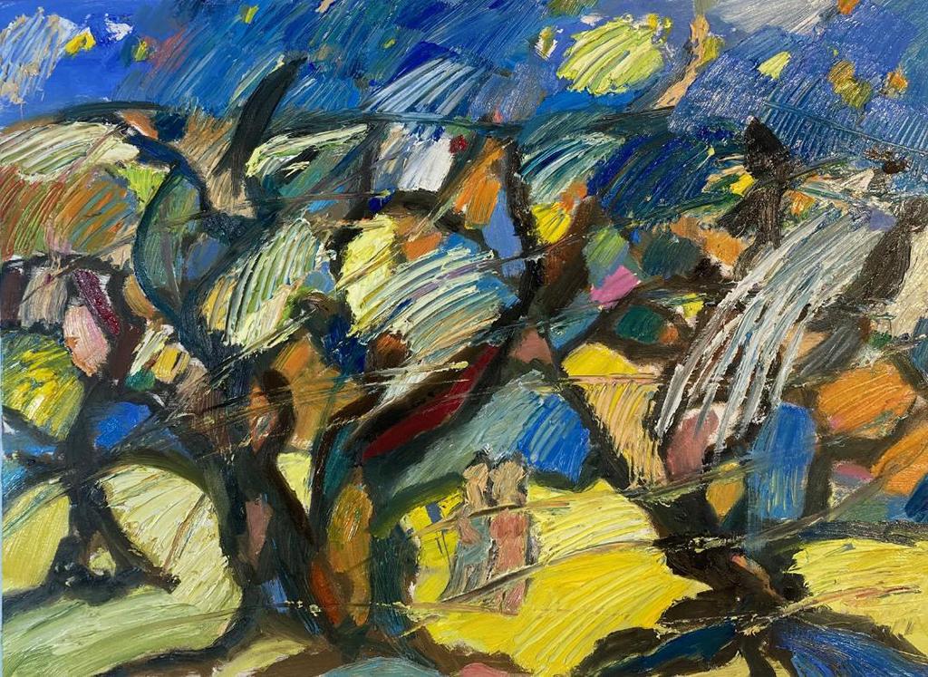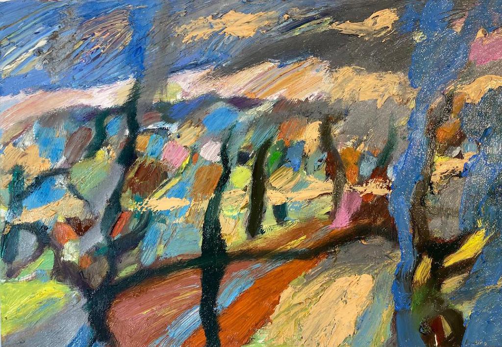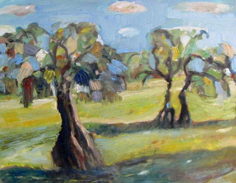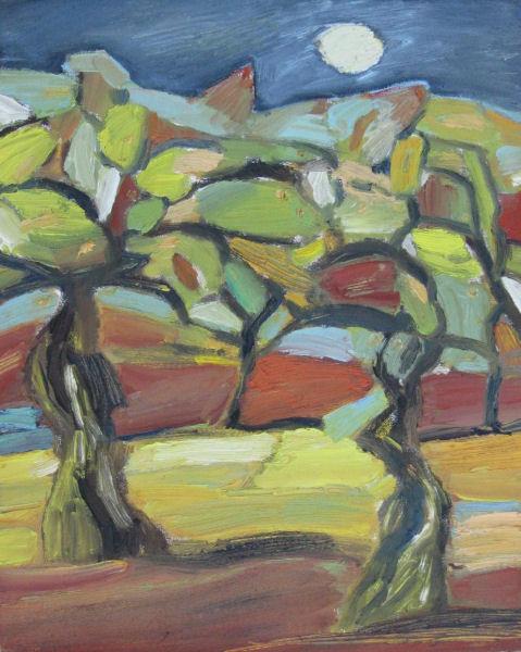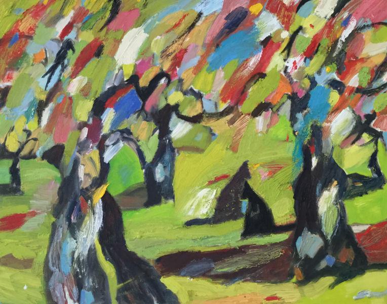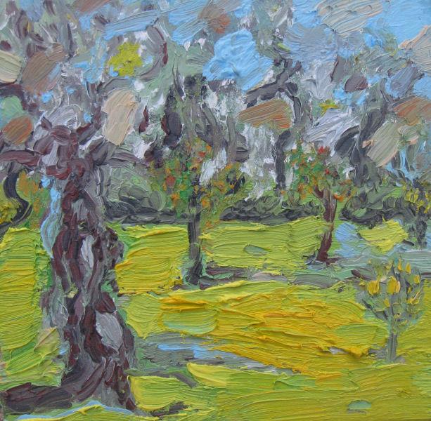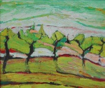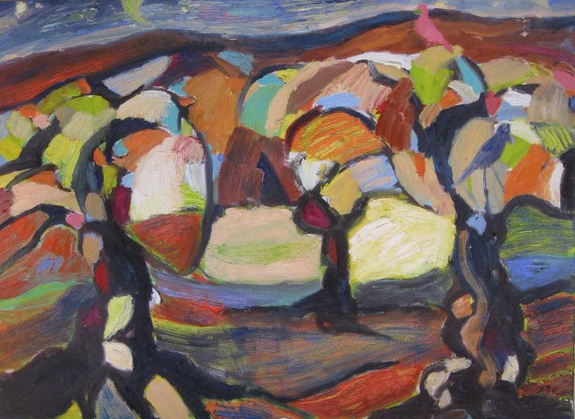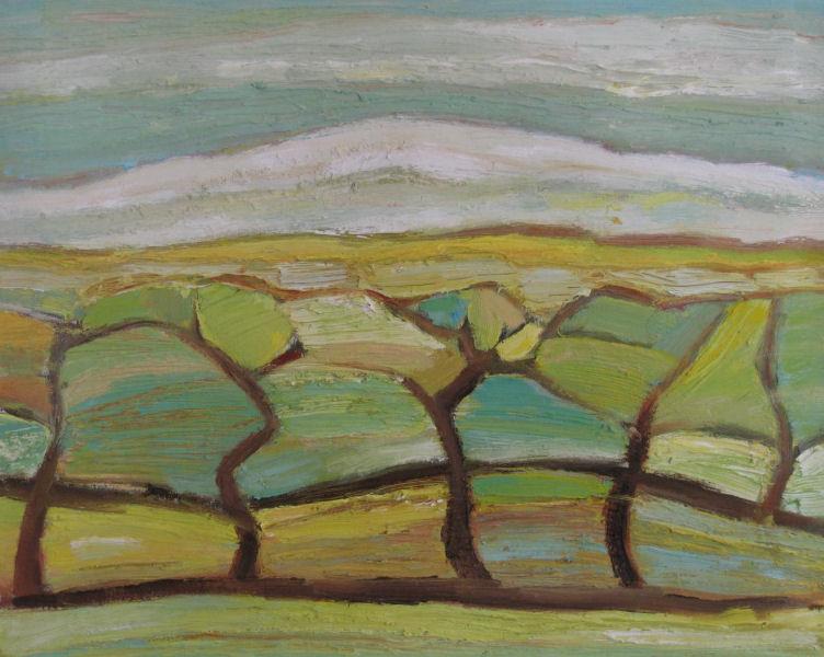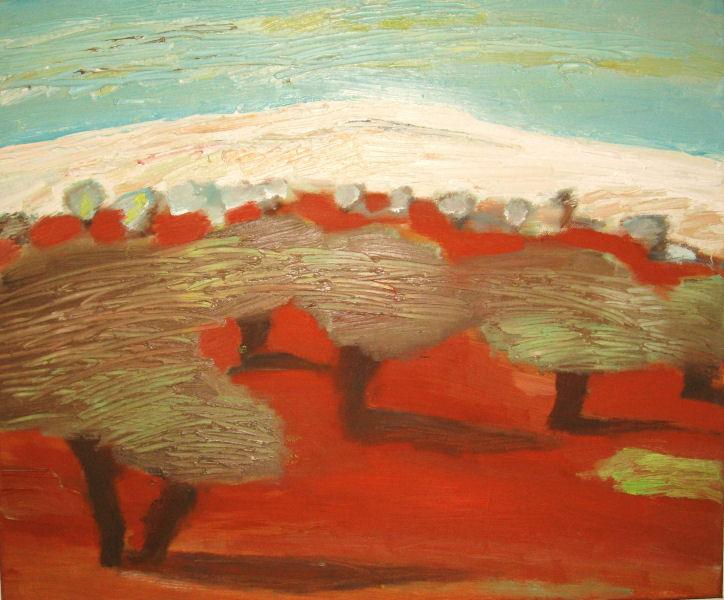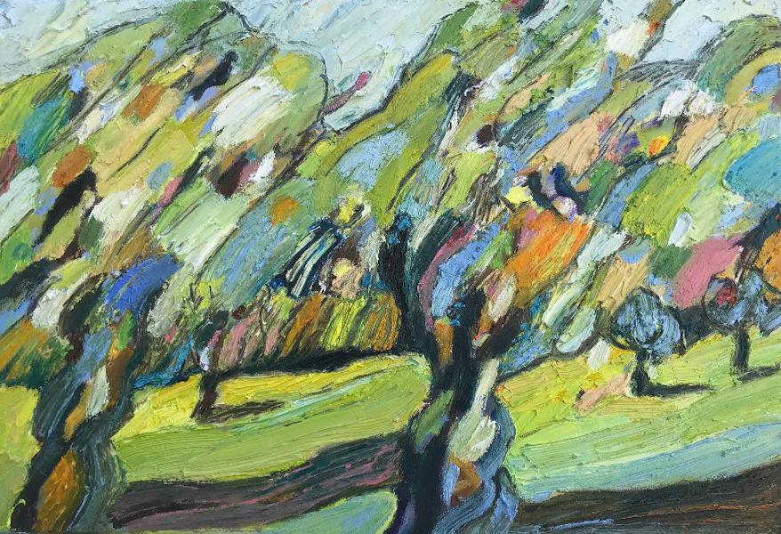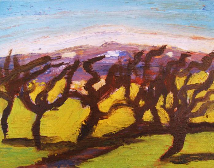 Olivar con azul, 50 x 80 cm, oil on canvas, 2020