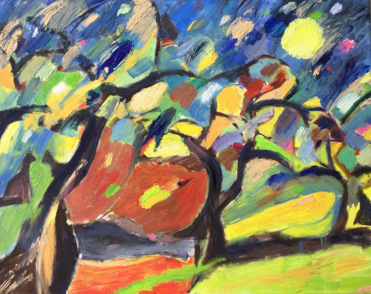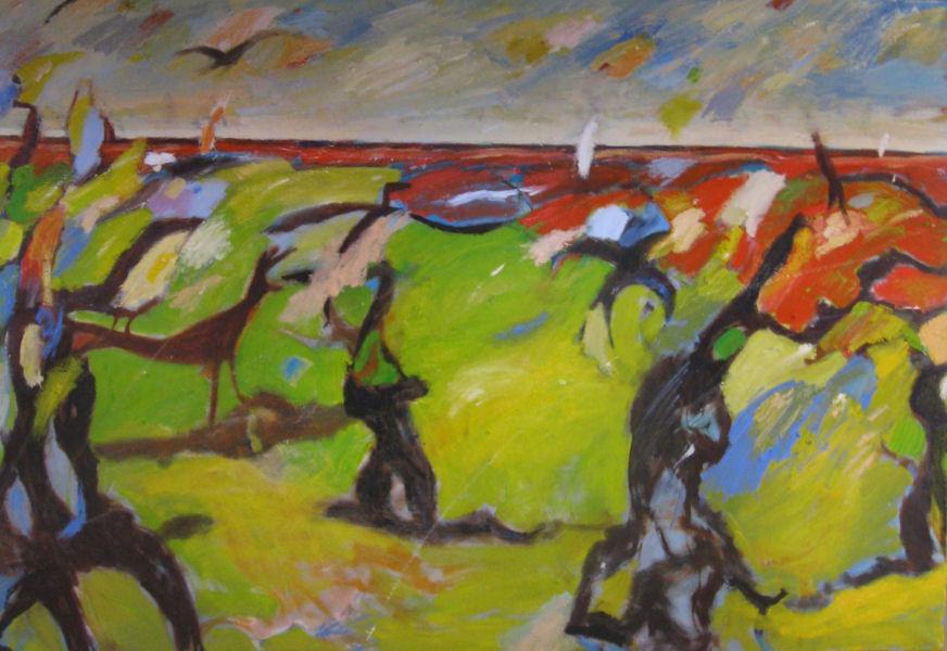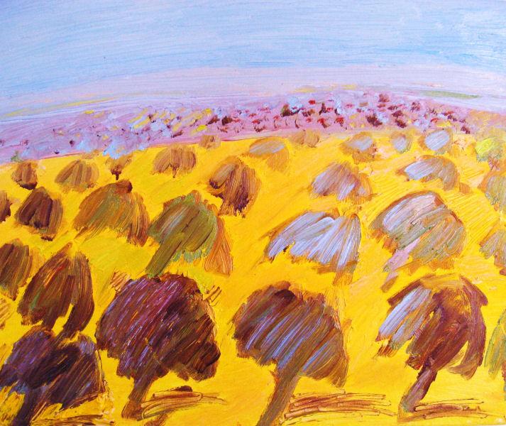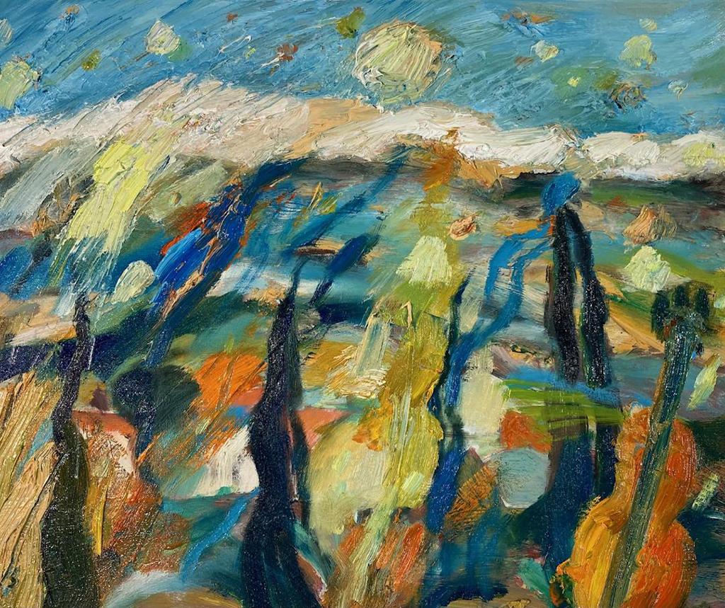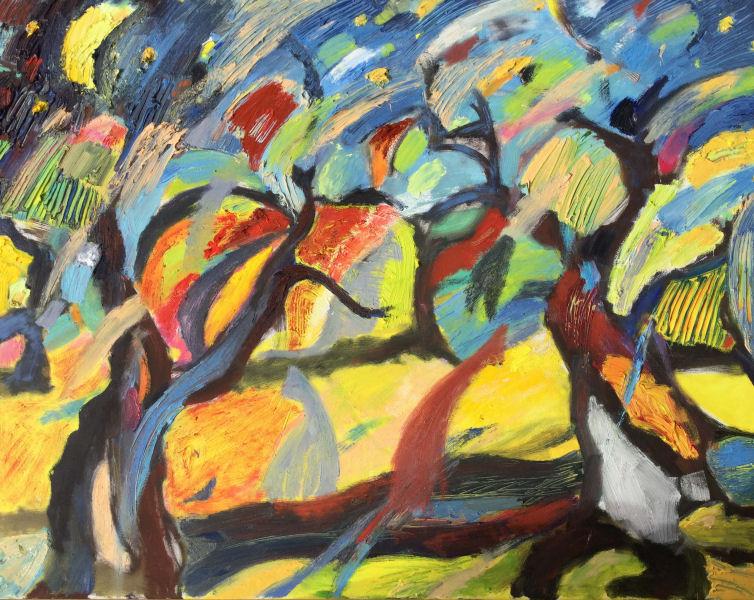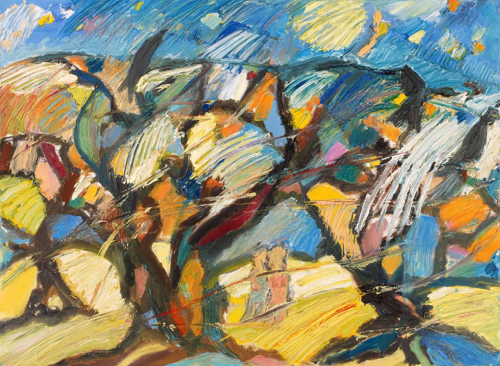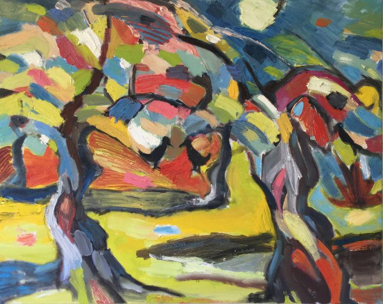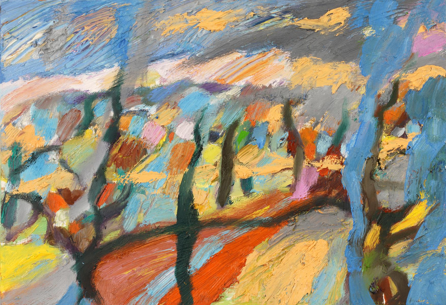 Olivar con azul, 50 x 80 cm, oil on canvas, 2020