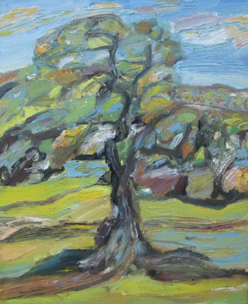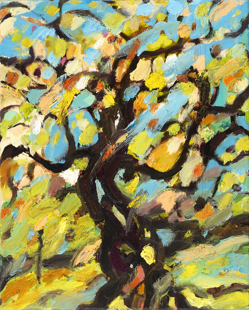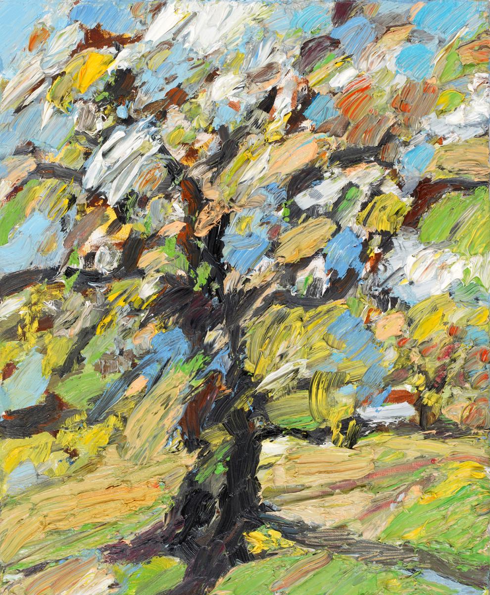 Arbol en un día primaveral, 46 x 38 cm, oil on canvas, 2025