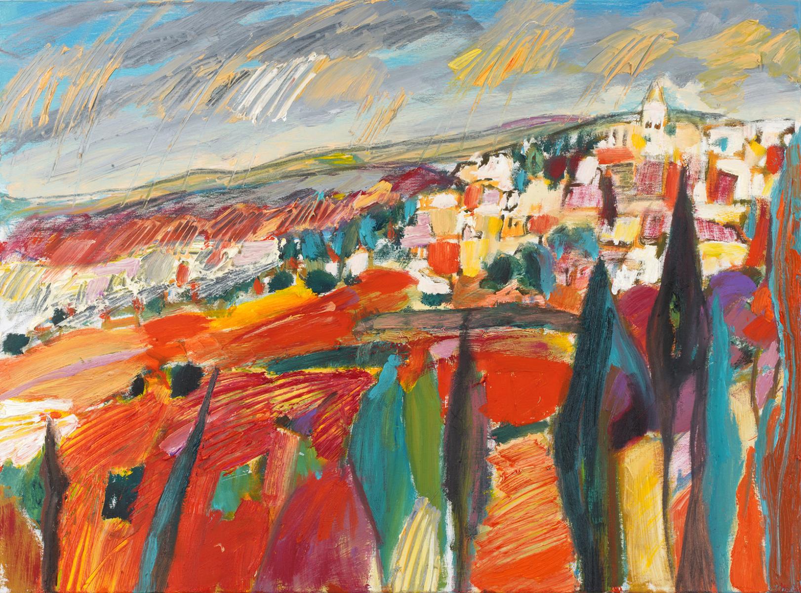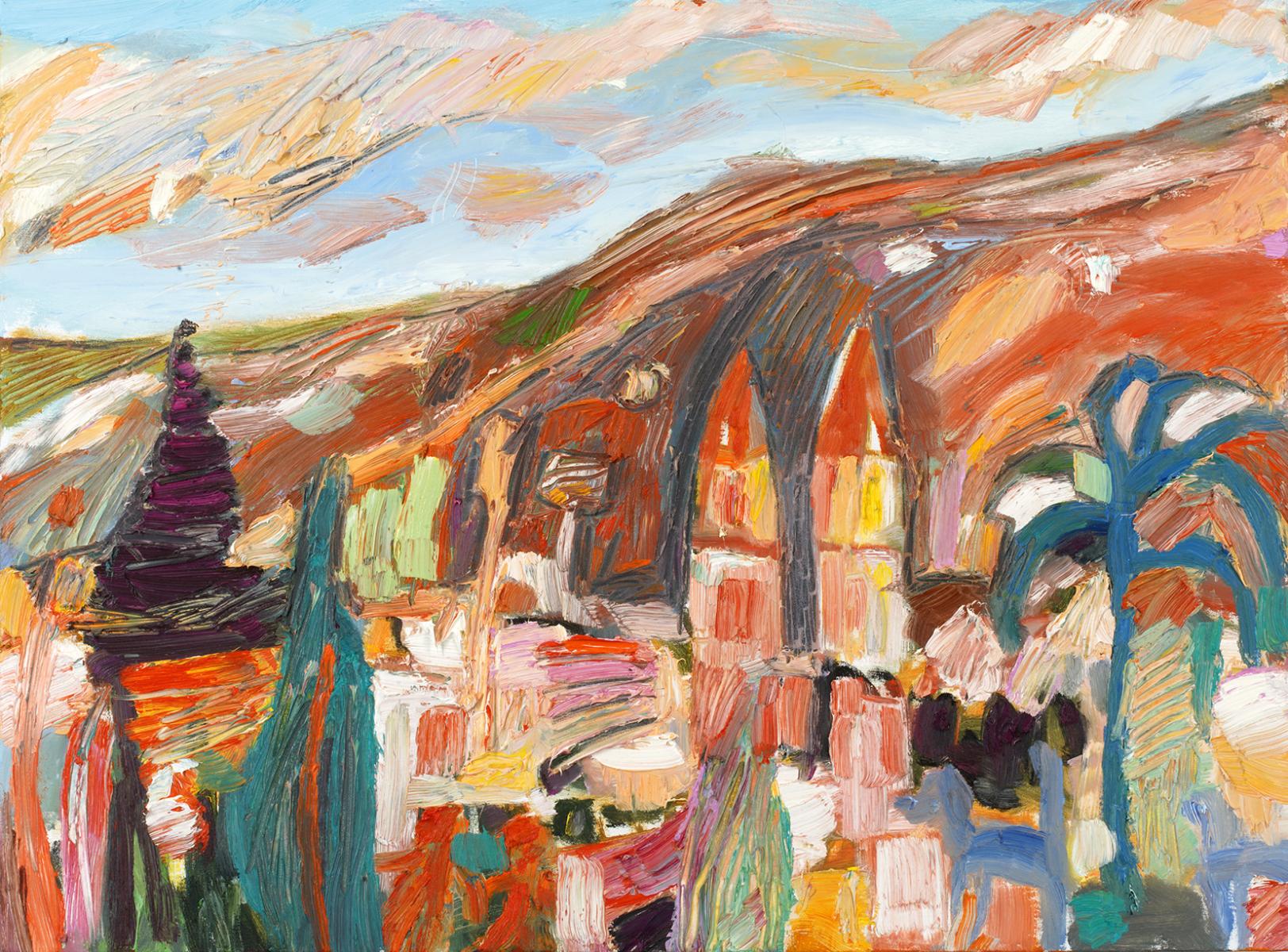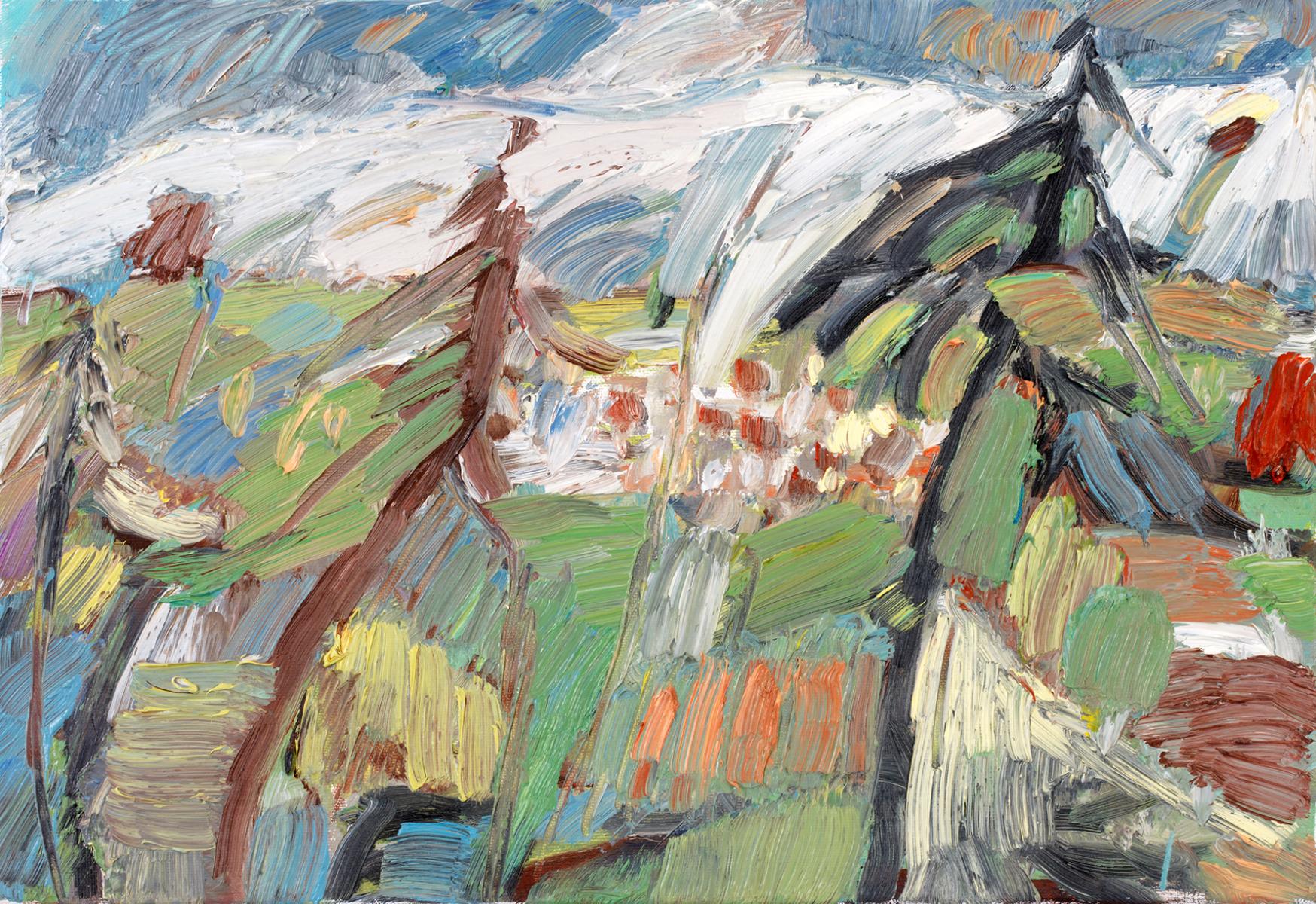 Pueblo con Sierra II, 81 x 60 cm, oil on canvas, 2025