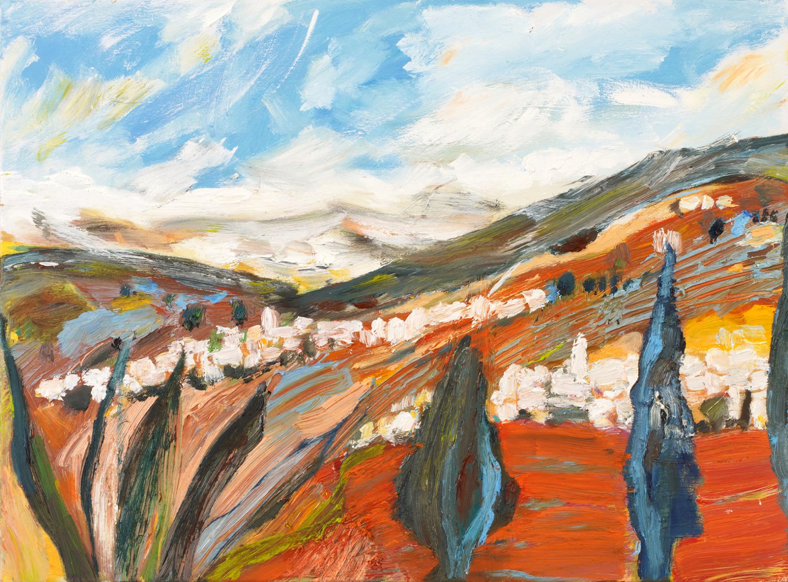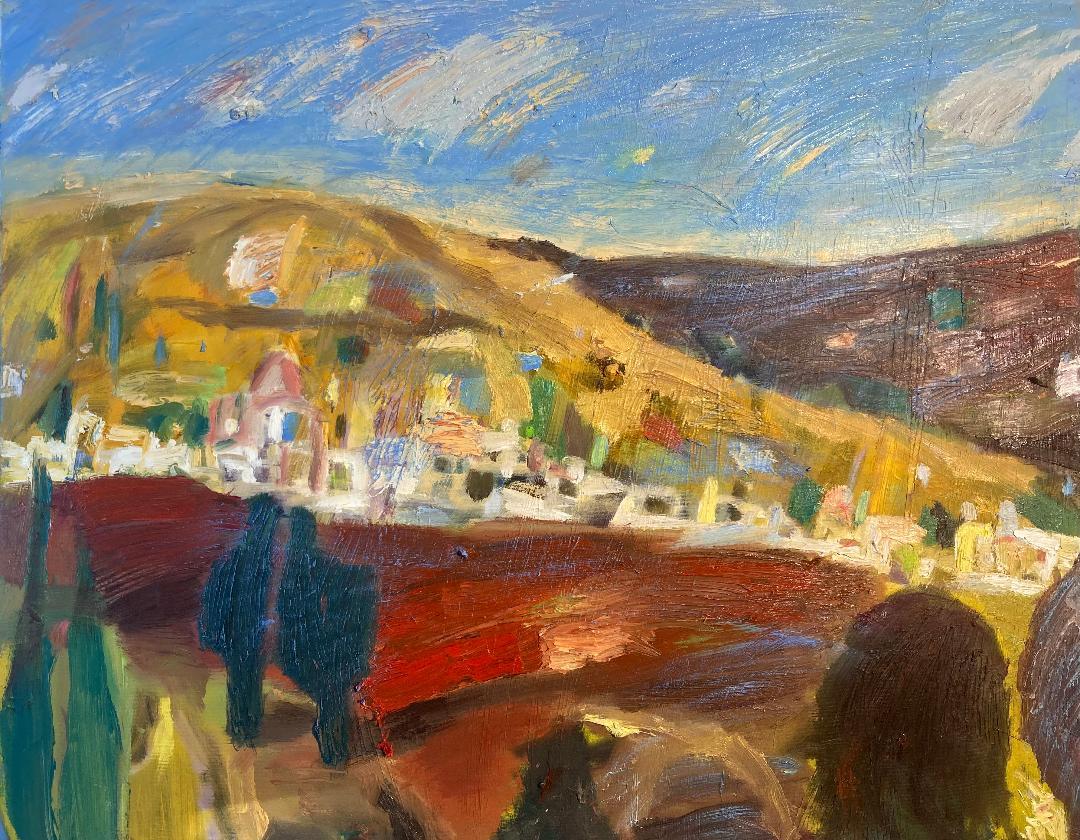 Pueblo con Sierra I, 81 x 60 cm, oil on canvas, 2025