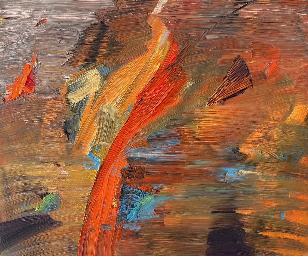 Arbol con sierra, 46 x 38 cm, oil on canvas, 2024