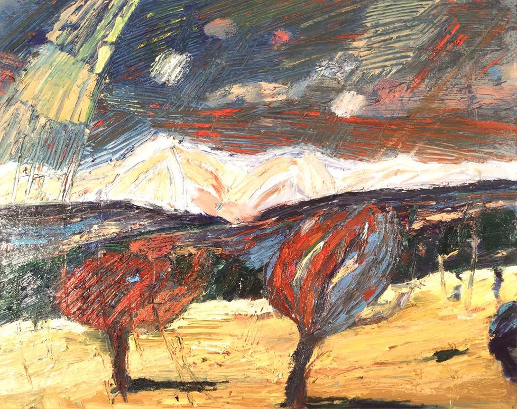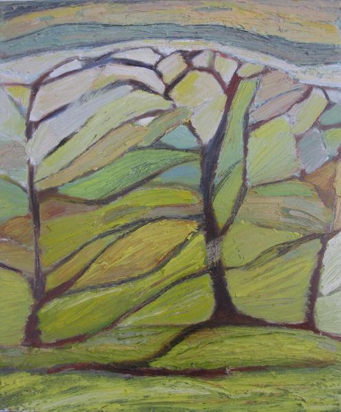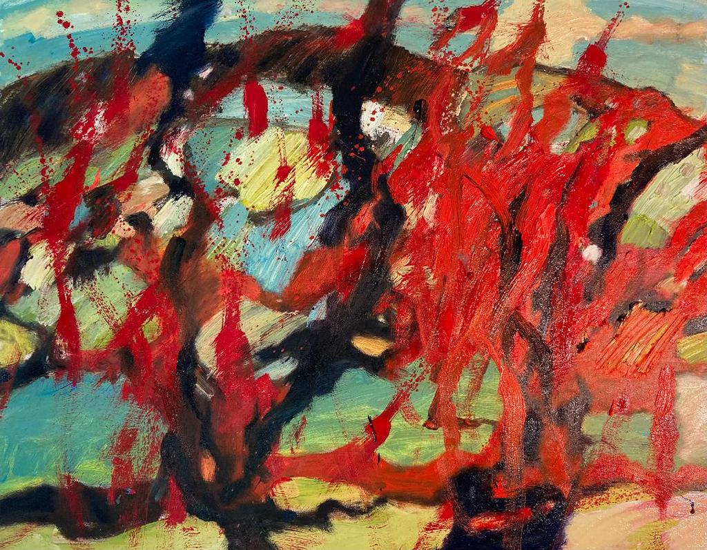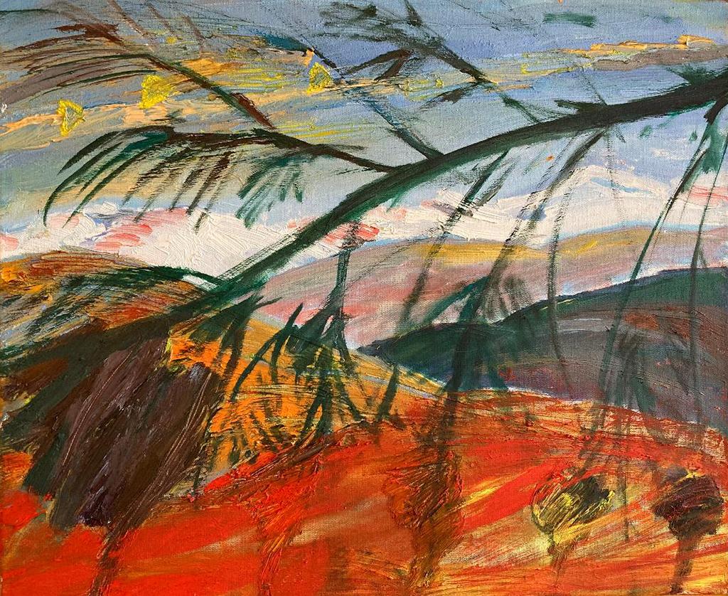 Arbol con Sierra, 46 x 38 cm, oil on canvas, 2024